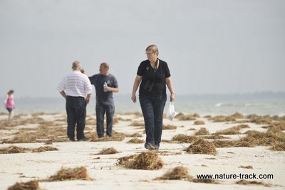 Cathy looks for seashells during our 20 minutes on a small island. Our Odessey Cruises boat ride took us there.