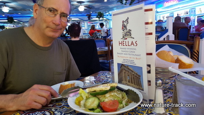 The best thing about Tarpon Springs was the food. On the plane, Cathy sat next to a lady who visits Tarpon Springs regularly and she recommended the restaurant “with the blue tiles”. Once we saw it, we immediately recognized it just from that description. The name of the restaurant is, Hella’s. We have never had Greek food so we ordered a sampler plate and a salad and shared them. It was really good food, probably the best we had in Florida.