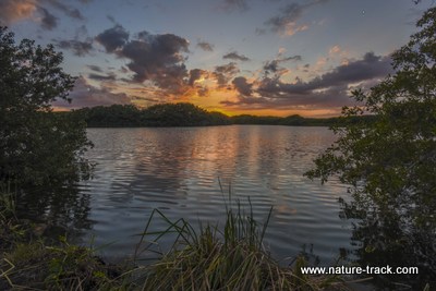 Parotis Pond sunset. A lot of waterbirds spend the night in the trees surrounding this pond. No boating is allowed during the nesting season.
