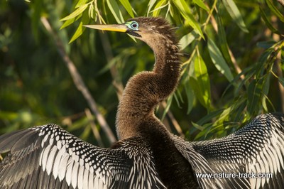 The anhinga, top, and the cormorant are sometimes confused, but all you need to remember is that the cormorant has the hooked beak while the anhinga's is straight.