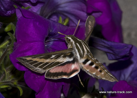 There are also other good reasons to use flash. If your subject is moving, flash may be useful to arrest that motion or your own motion. In this photograph of a sphinx moth, I handheld the camera at dusk and used an accessory flash to compensate for my unsteadiness and the rapid beating of the moth’s wings and to allow me to use a reasonable shutter speed so there wouldn’t be any ghosting. It worked rather well, I think. I have used it for moving other insects, flowers and birds as well.