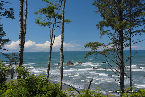 We finally made it to Olympic National Park around noon. Olympic is an interesting park in that it is in several pieces. We reached the coastal strip first and spent a little time looking at the campgrounds and the beaches. We watched ships on the ocean, looked at the lighthouse on Destruction Island (from a distance) and watched people beachcomb as the tide was out. This was definitely an impressive spot, a place where we would like to return to and camp for a week or so. We had been advised by a ranger not to miss the town of La Push on the coast, but we were pushed for time and ended up skipping it.